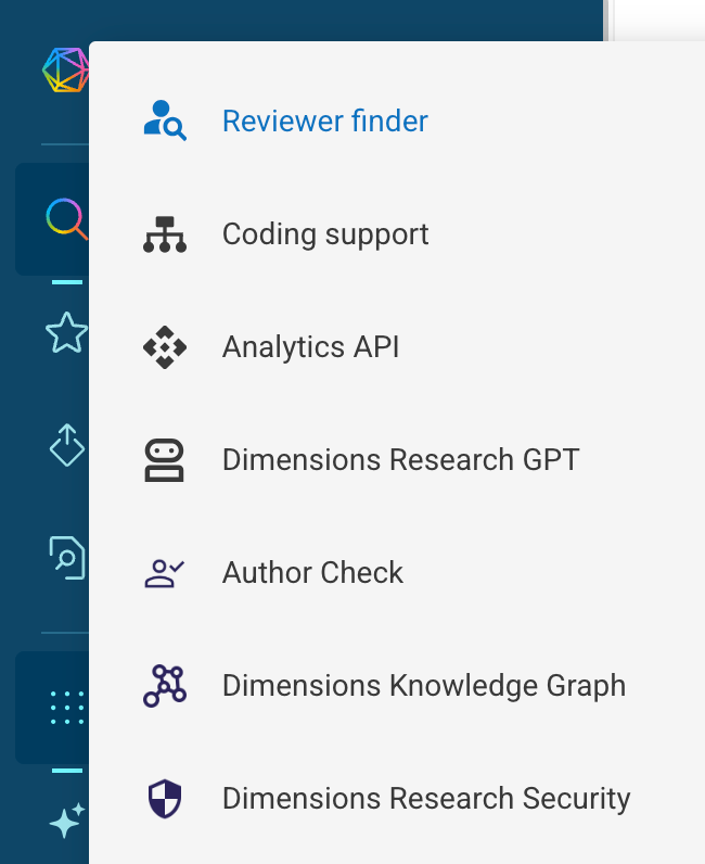 Your subscription to Dimensions may include access to one or more dashboards (also called applications or modules). Examples include: