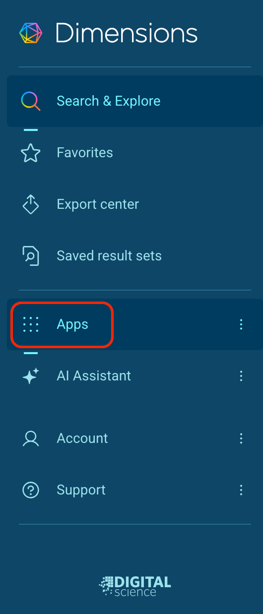Each of your subscribed dashboards will be available to you by selecting the Apps menu from the left menu bar, then selecting the desired dashboard: